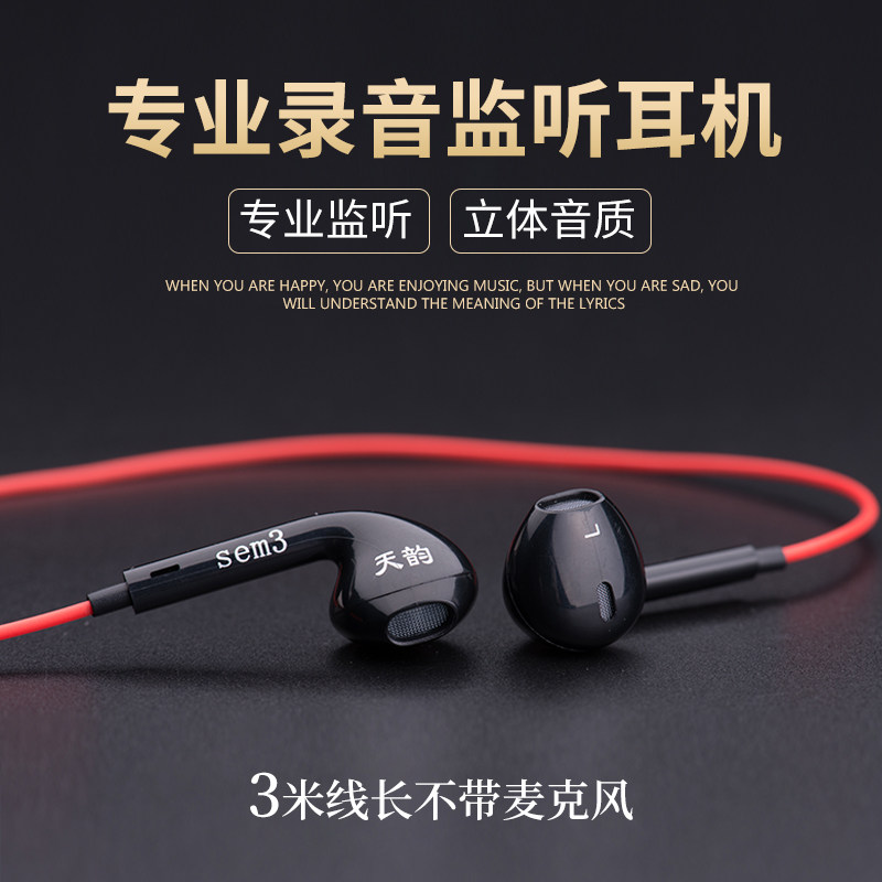 Tianyun SEM3 SEM6 live broadcast special headphones sound card special in-ear monitoring headphone earbuds 3 meters