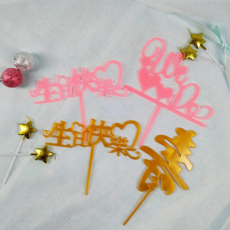 Cake decoration baking dress and birthday happy life Chinese accessories chocolate Macron plugin