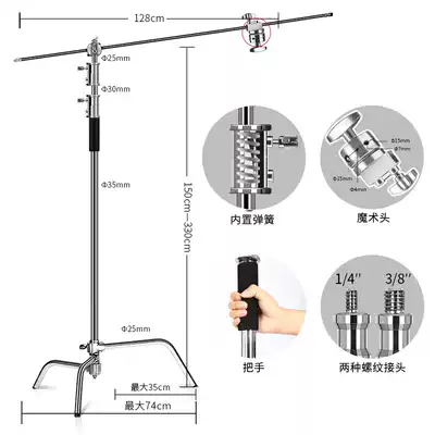 C-type photography magic leg light stand 40-inch stainless steel film and television bracket oblique arm indoor flag board bracket detachable studio light tripod with crossbar crossbar flash photography light stand Ceiling light shelf