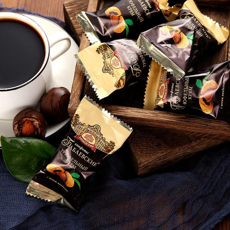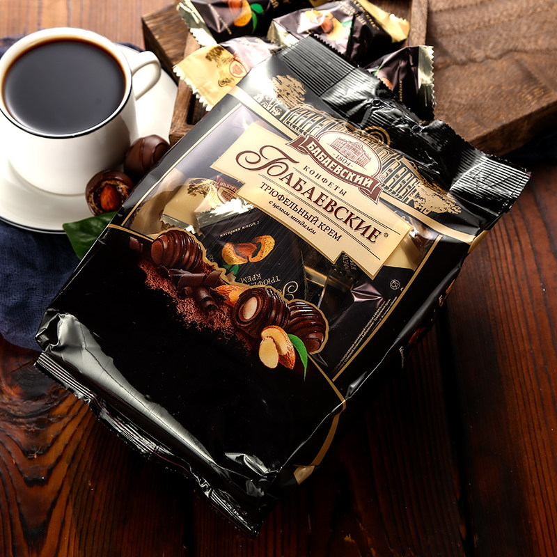 Russian imports Babayev flat walnut dark chocolate weening truffle candy sandwich fruit kernel snack 200g