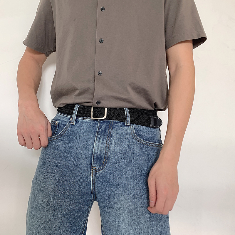 Canvas belt male black Han Edition elastic strength of simple and tide free punched needle belt in air belt