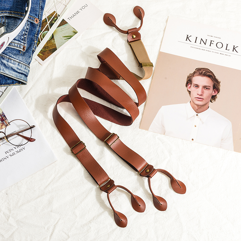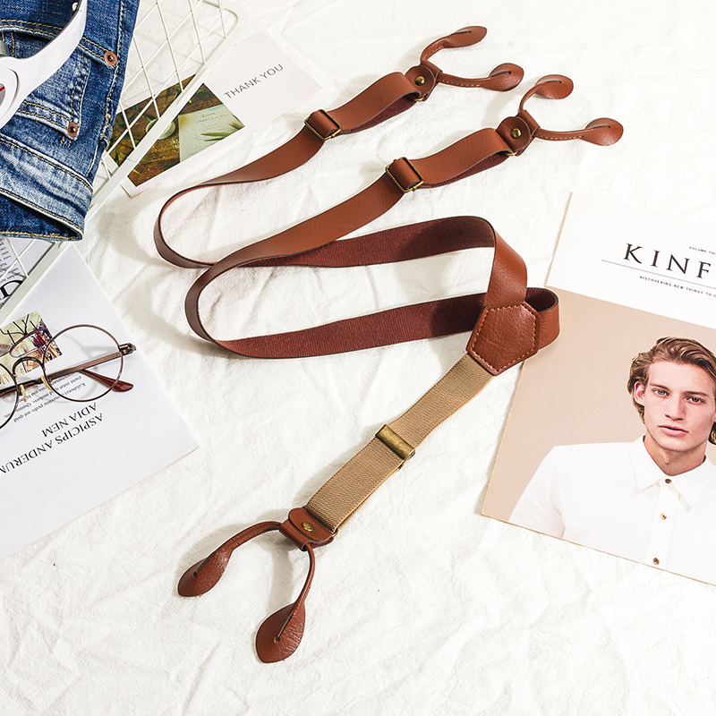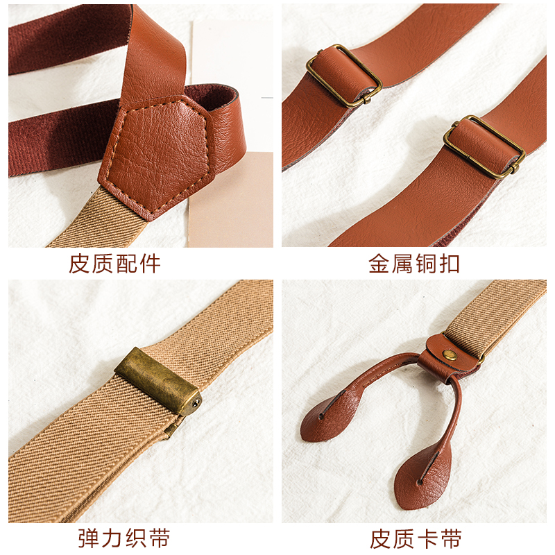 Nostalgia Retro Cortex Holding Baby Bag Non-slip Button style hanging pants with male and female universal shoulder strap brown width 2CM