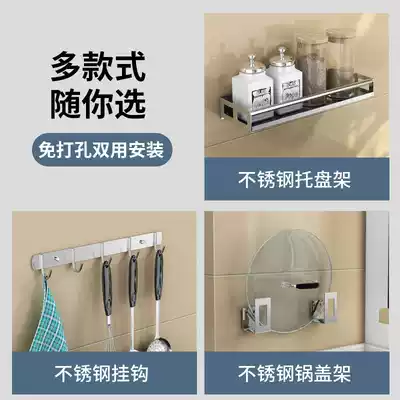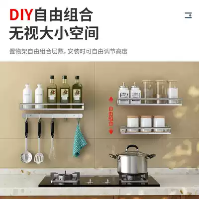 Kitchen shelf Stainless steel multi-function seasoning tank rack Punch-free wall-mounted condiment oil, salt, sauce and vinegar storage shelf