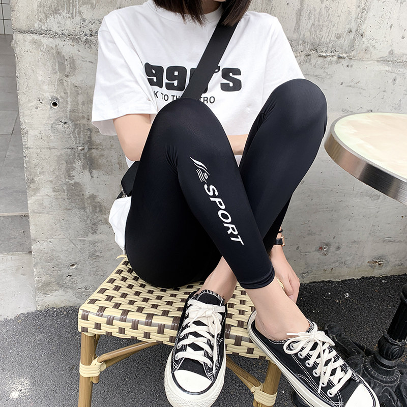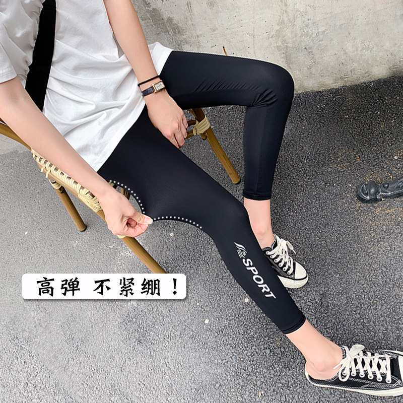 Ice silk quick-drying underwear, women's outer wear, nine-point thin section, high-waisted, thin, sports, yoga, letters, small, eight-point autumn