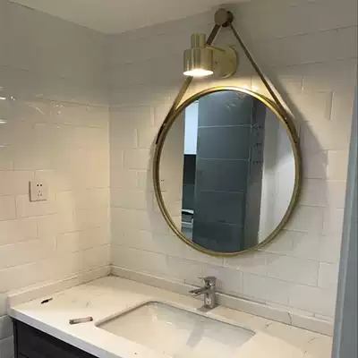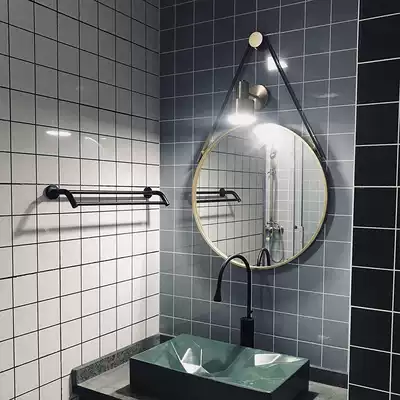 Nordic cosmetic room hanging mirror light luxury bathroom mirror round makeup hanging mirror wall with frame black round mirror decorative mirror