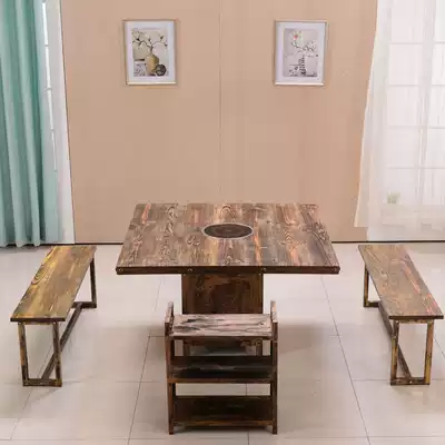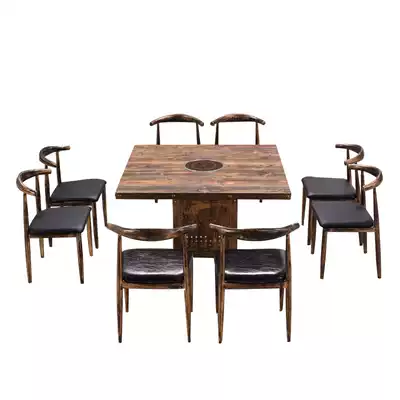Retro hot pot table Induction cooker All-in-one Restaurant Dining hall Hotel barbecue restaurant Gas stove Commercial table and chair combination