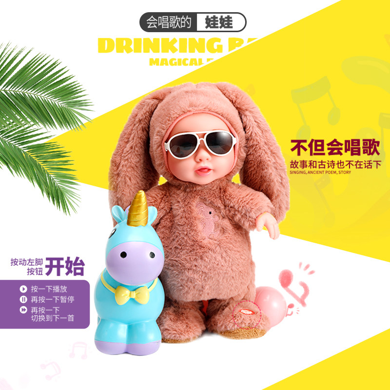 Simulation of smart dolls children's toy girl princess doll walk singing and speaking tongue will eat milk