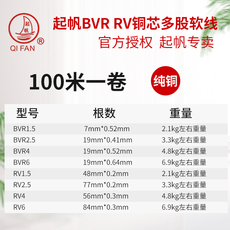 Sail wire BVR RV1 5 2 5 4 6 square single core multi-strand pure copper soft wire national standard foot meter