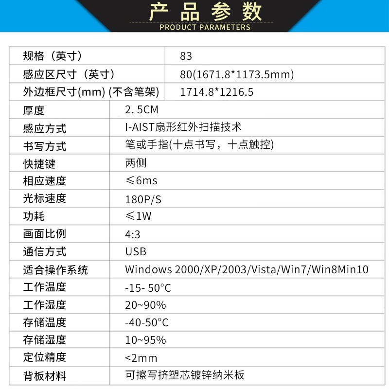 HiteVision 83 inch whiteboard i685kc official standard Hitevision 83 inch 685k 583 (random shipment) standard Hitevision 93 inch whiteboard i693w official standard (package 1) whiteboard i685kc + D586 short throw projector + hanger + HDMI cable (package 2) whiteboard i685kc + short throw projector + hanger + HDMI line + push-pull green board + audio (package 3) i685kc + short throw projector + hanger + hdmi line + push-pull green board + wall hanging machine (package 4) i685kc + short throw projector + hanger + HDMI line + push-pull green board + wall hanging booth (package 6) 83 inch white board i685kc + Panasonic short throw projector + hanger (package 7) Hitch 83 inch white board i685k + Premium short throw projector + hanger Hitch 93 inch widescreen i693w official standard electronic whiteboard mobile bracket