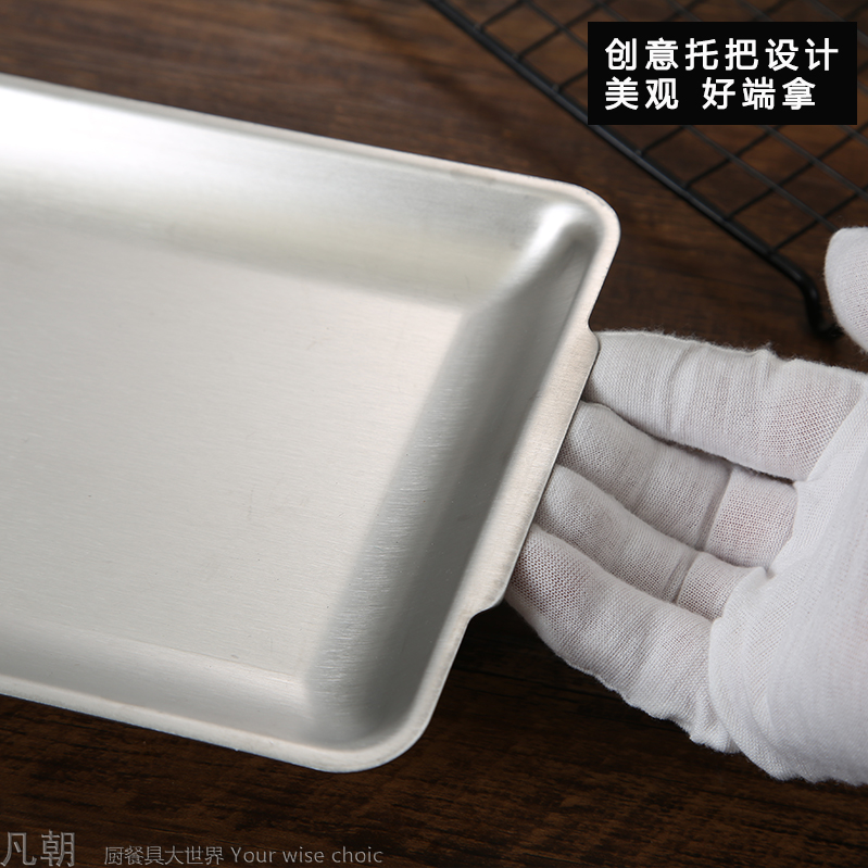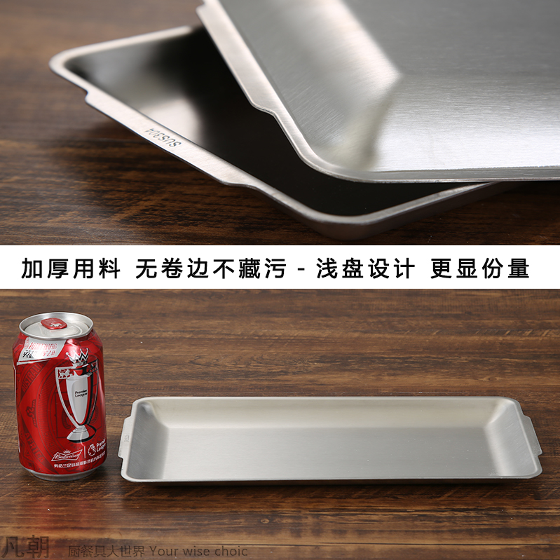Rectangular Tray 304 Stainless Steel Han Style Grilled Pan Grill Pan Snack Sushi Dinner Plate Shallow Flat-bottomed Creative Care Tray