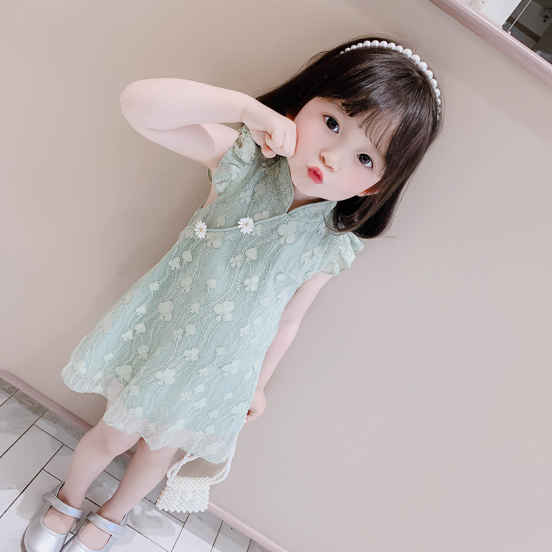 Girls' dress spring and summer baby foreign style skirt children's cheongsam princess dress children's vest skirt 2023 summer new