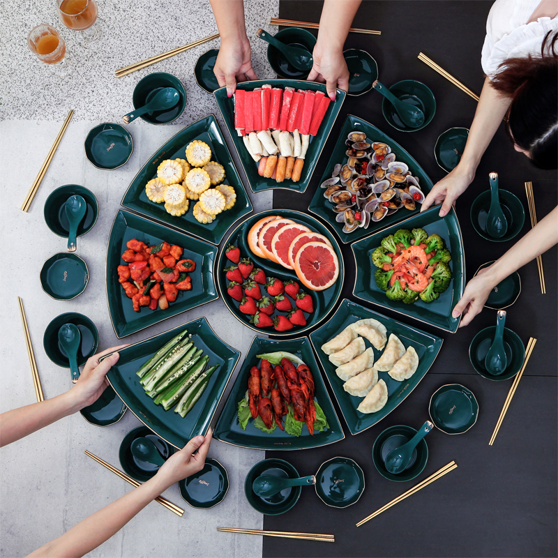 Green glaze moon platter (5 pieces) green glaze platter 8 1 (Tai Chi plate) green glaze platter 8 1 (big soup bowl) green glaze platter (8 pieces) green glaze platter (9 pieces) green glaze platter (10 pieces)