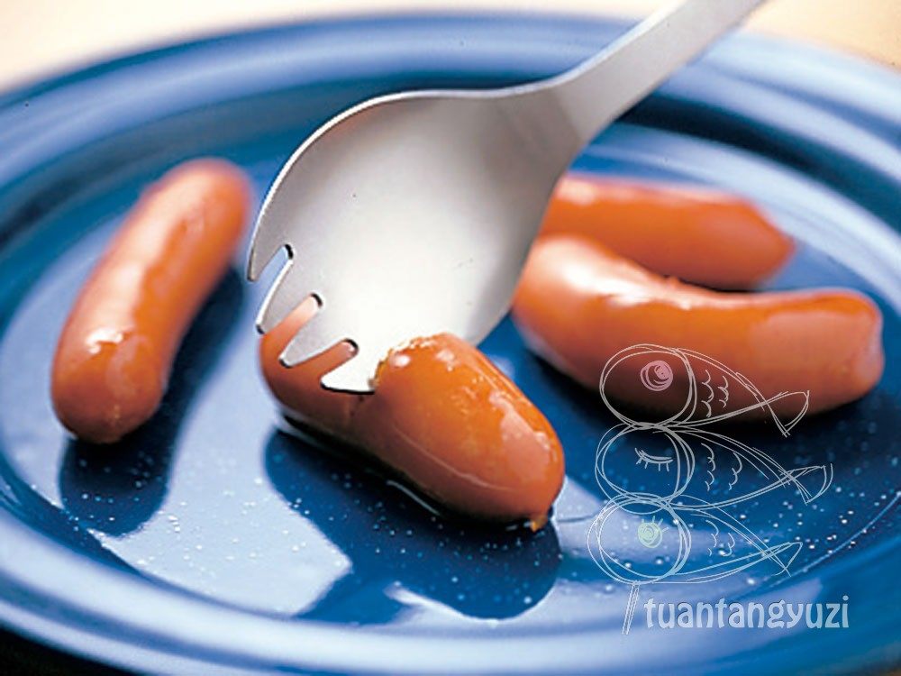 The knife and fork spoon the spoon with a spoon.