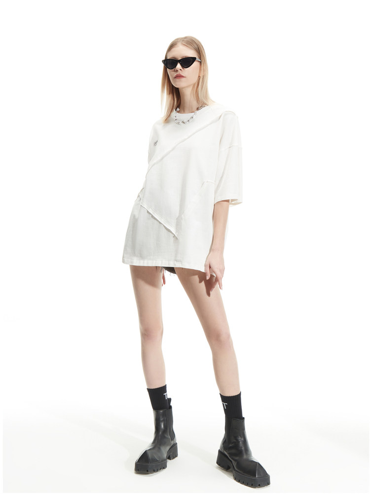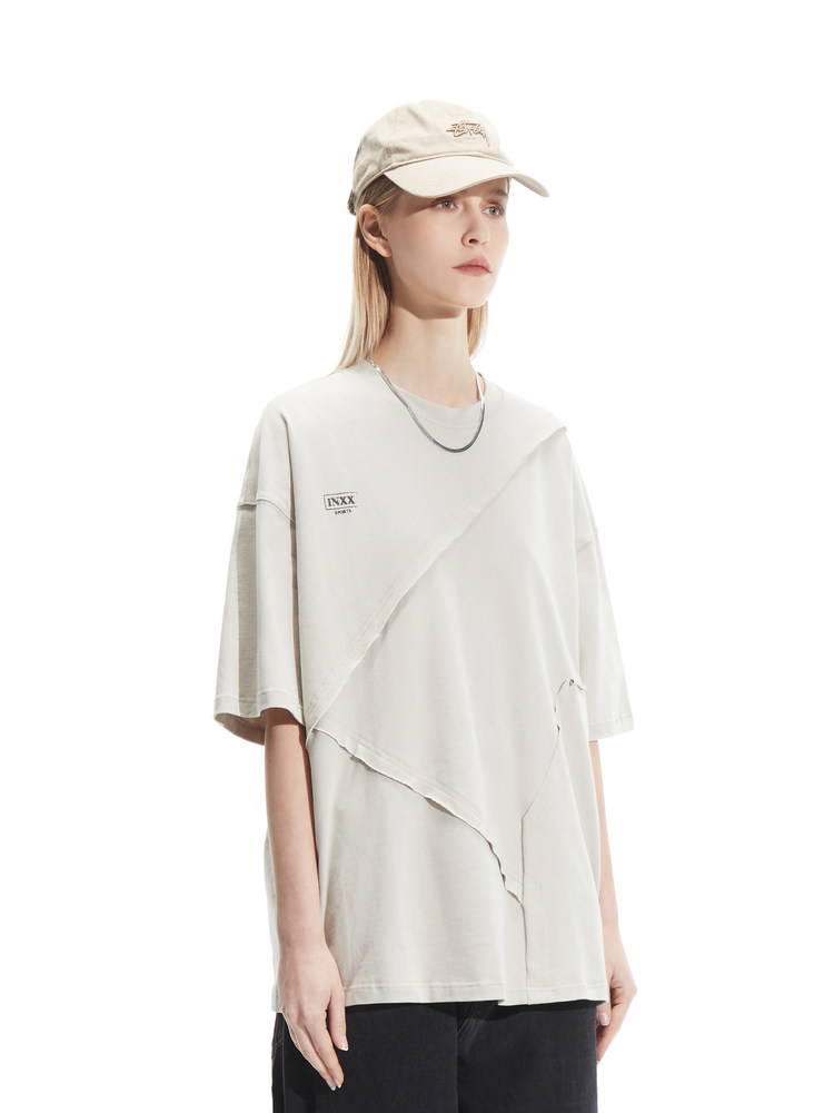 ISS BY INXX SPORTS summer loose design stitching design short-sleeved T-shirt men and women round neck cotton tide