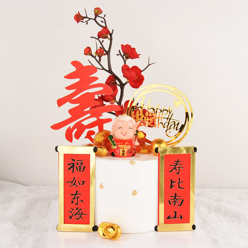 Wish Birthday Baking Cake Decorated Shoukongshou Shou Shou Shou Shou Shou Calligraphy Birthday Dress Code fu such as the East China Sea Couplets Plugin