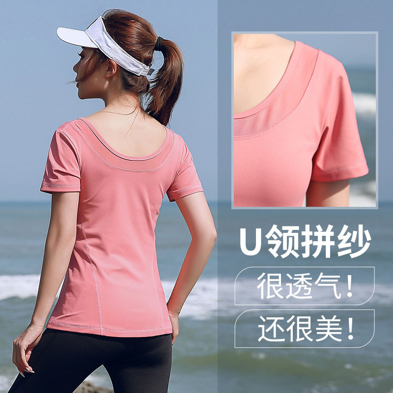 Large size thin yoga clothes women 200 pounds fat mm summer short-sleeved fitness clothes quick-drying tops Running sports T-shirts