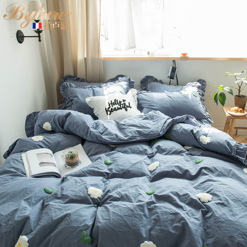Bylure Day Style Cartoon Cartoon Cartoon Four Pieces Of Pure Cotton Full Cotton Ins Wind Summer Pro-Skin Soft Skin 1 8 Bed Bedding-Taobao