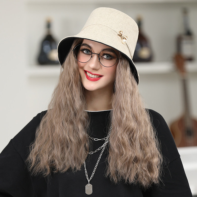 Wig hat one-piece fashion autumn and winter female long hair trend hat with wig simulation long curly hair full headgear