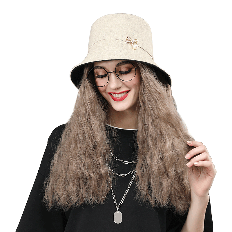 Little Fisherman Hat-Corn Hot (Beige hat Milk Tea Linen)