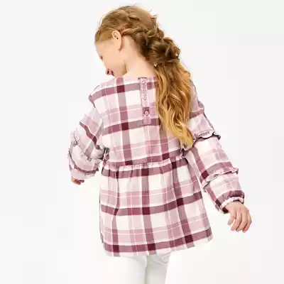 All-cotton era female children's coat cotton woven cotton doll shirt plus velvet warm skirt type sweet plaid suit