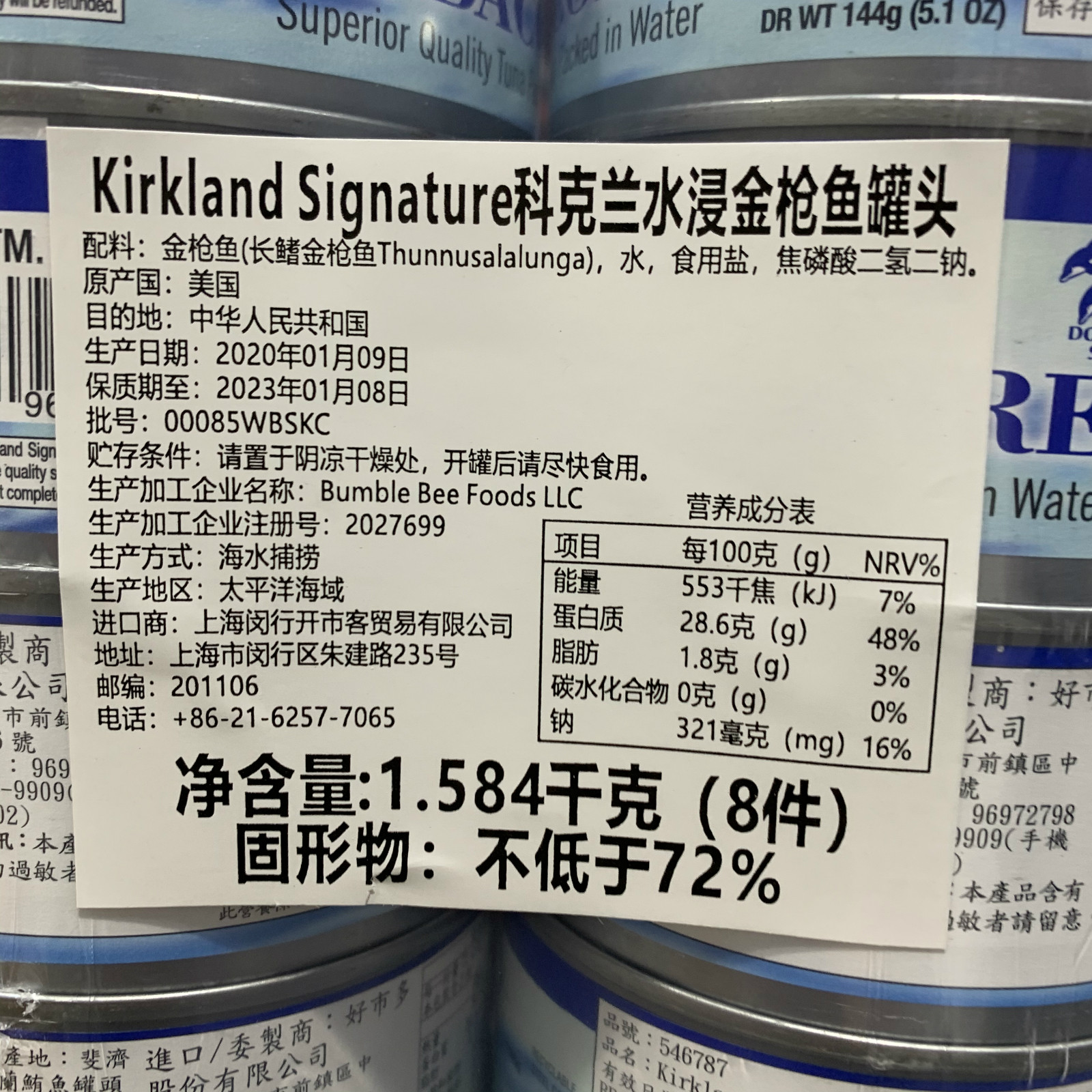 Shanghai Costco Kirkland Cokland Water Dip Longfin Tuna Ready-to-eat Seafood Canned 8 Pieces