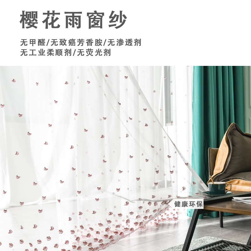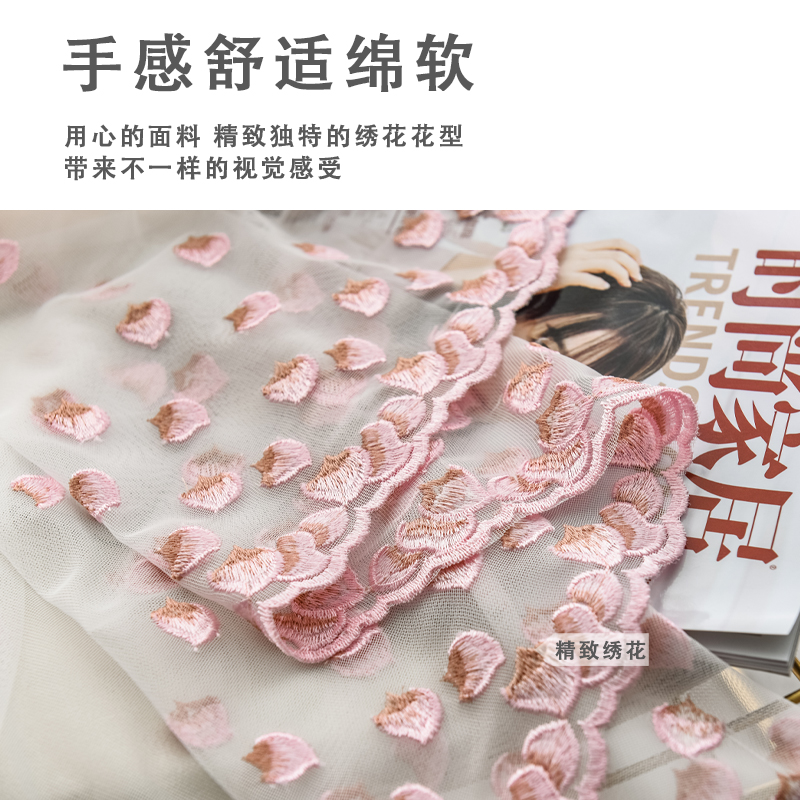 Hibiscus imperial curtains and gauze curtains Nordic minimalist girl fresh bedroom bay window living room shade sunscreen gauze princess