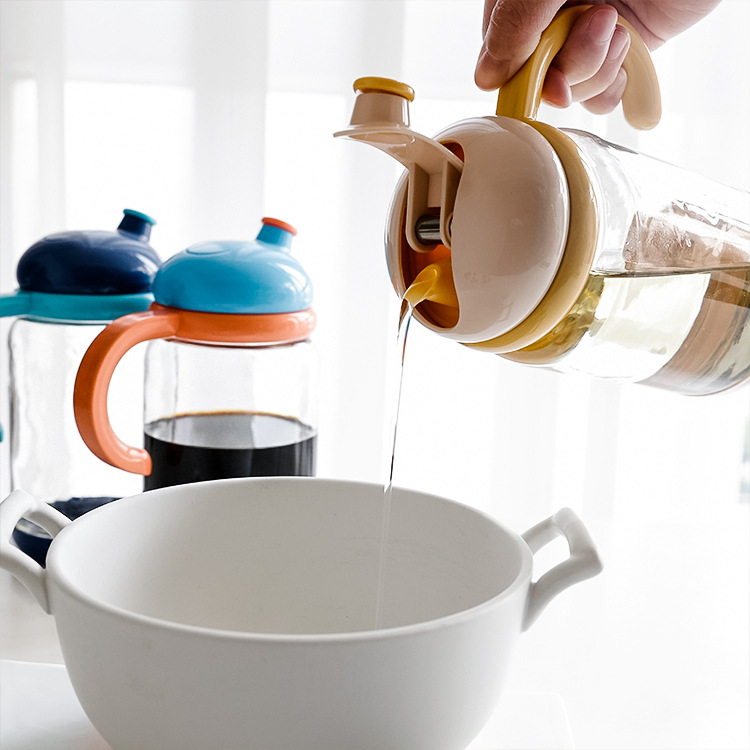 Glass oil pot Red handle Glass oil pot blue handle Glass oil pot yellow handle