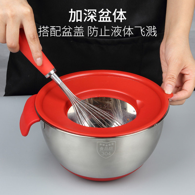 Sugar village food grade 304 stainless steel egg beating basin thickened and deepened splash-proof baking tools household and pasta leak-proof pots
