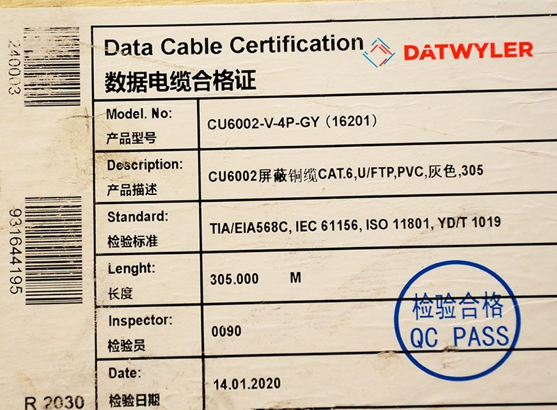 The original Detwyler six class shielded network route CU6002-V-4P-GY network line 305m 16201