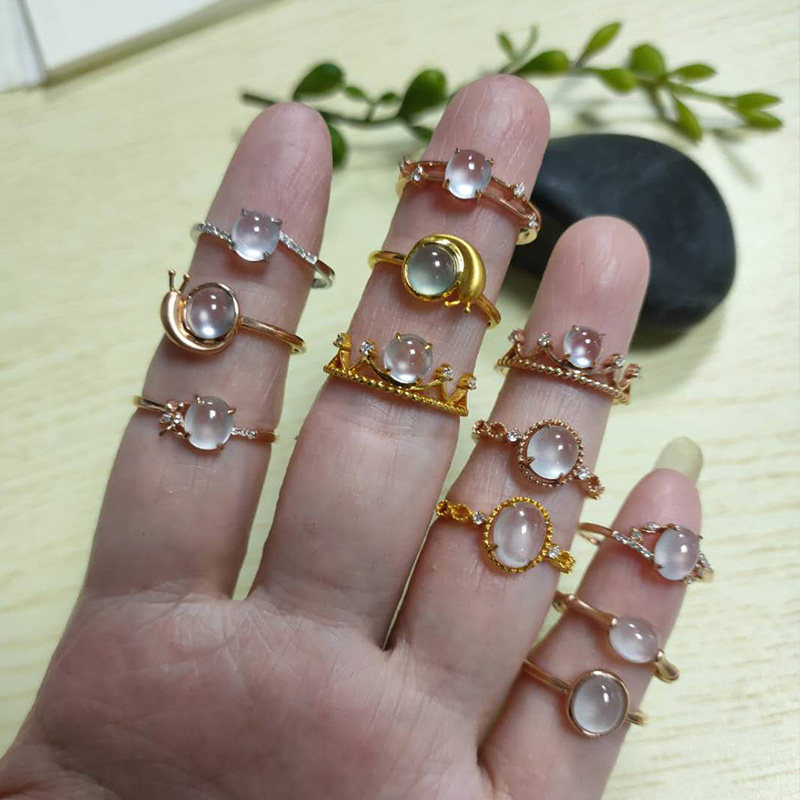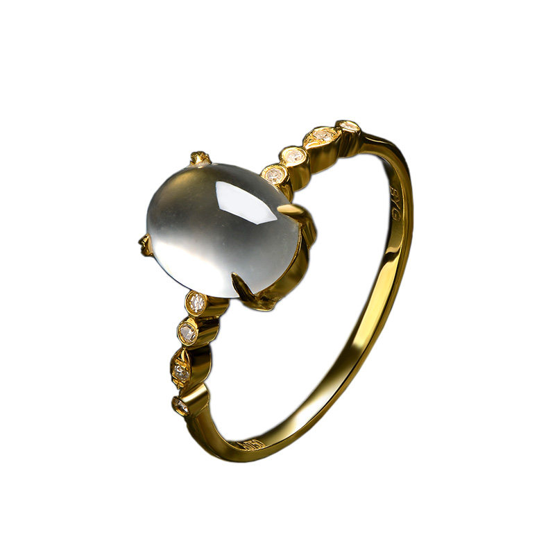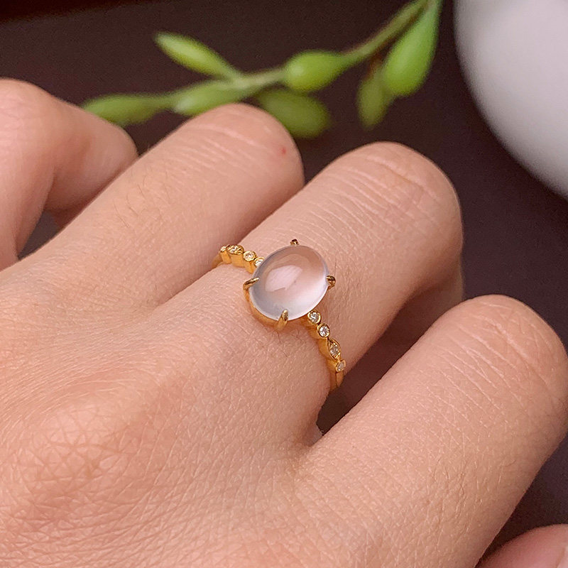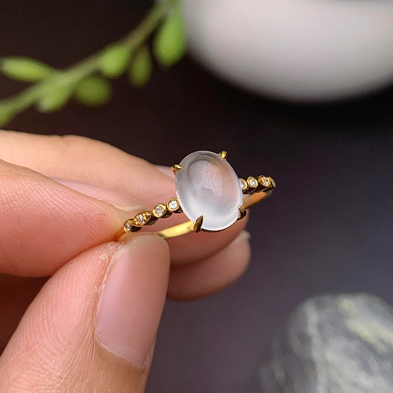Myanmar natural ice seed emerald ring female egg noodles A goods boutique jade ring ring 18K rose gold companion drill inlaid