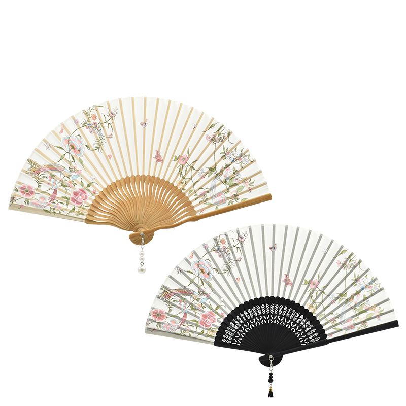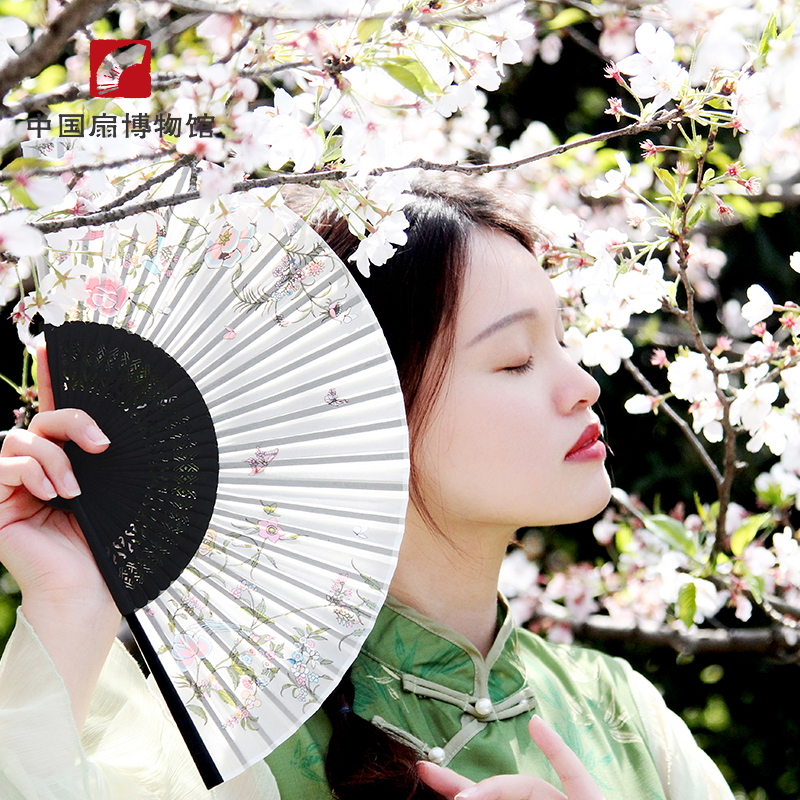 (Chinese Fan Museum) Flowers Romance Lady Folding Fan Classical Floral Vintage Gift Ancient Wind Silk Noodles Fan