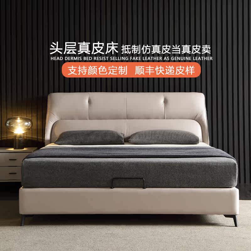 Light luxury Nappa leather bed (all solid wood)