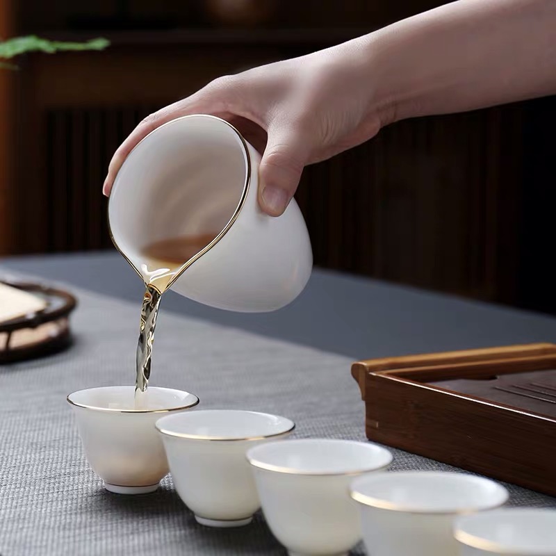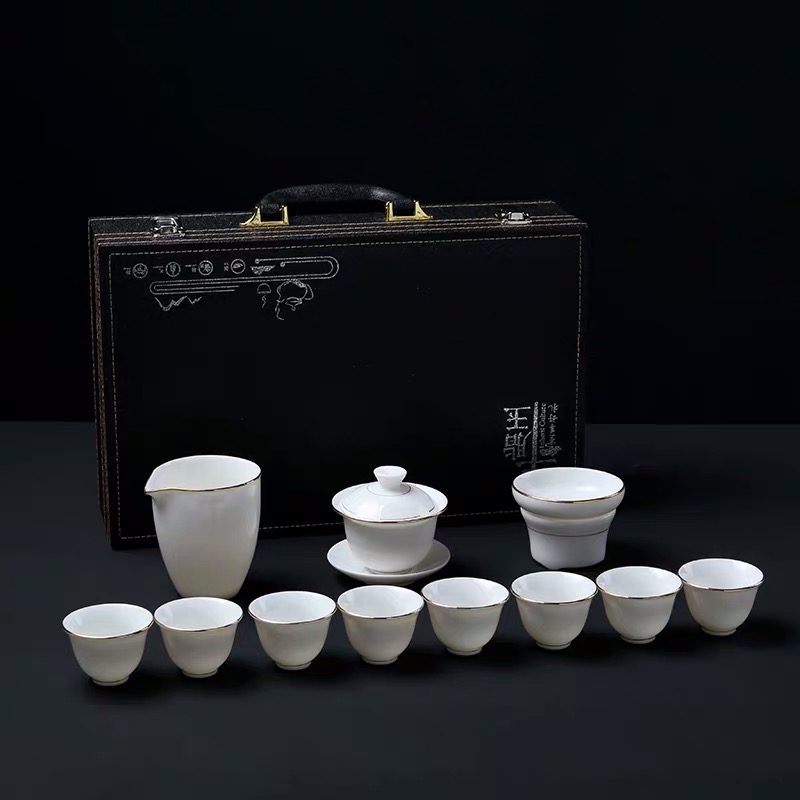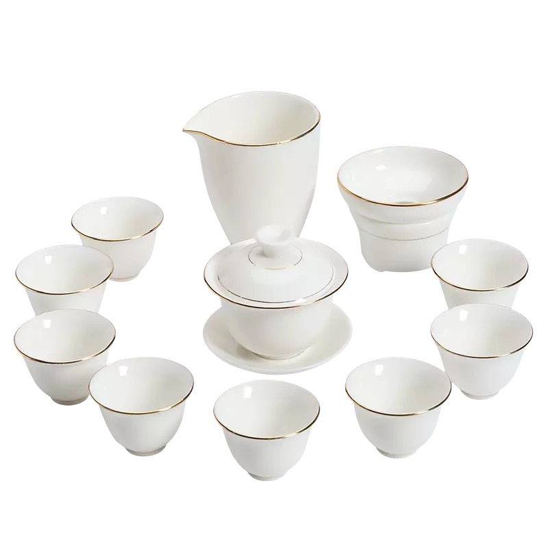 White ceramic gold cash tea set for kung fu tea set household full dehue white ceramic cover bowl with gift box