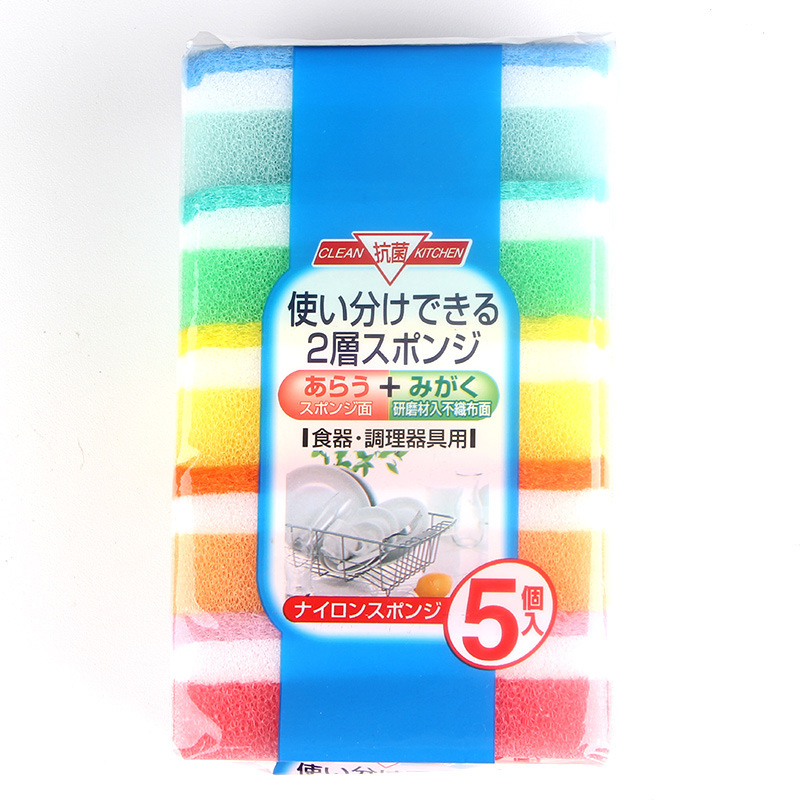 Add a bit of color to the kitchen Japanese original single new dishwashing sponge three-layer color 100 clean cotton 5 pieces fit