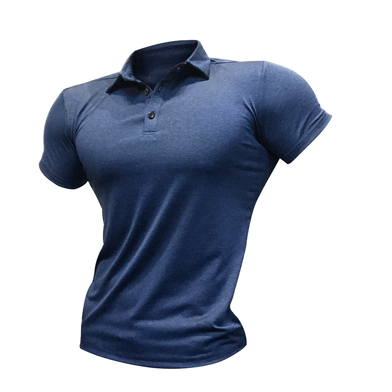 Quick-drying sports polo shirt men's short sleeves high elastic tight T-shirt muscle fitness top personal trainer work uniform customization