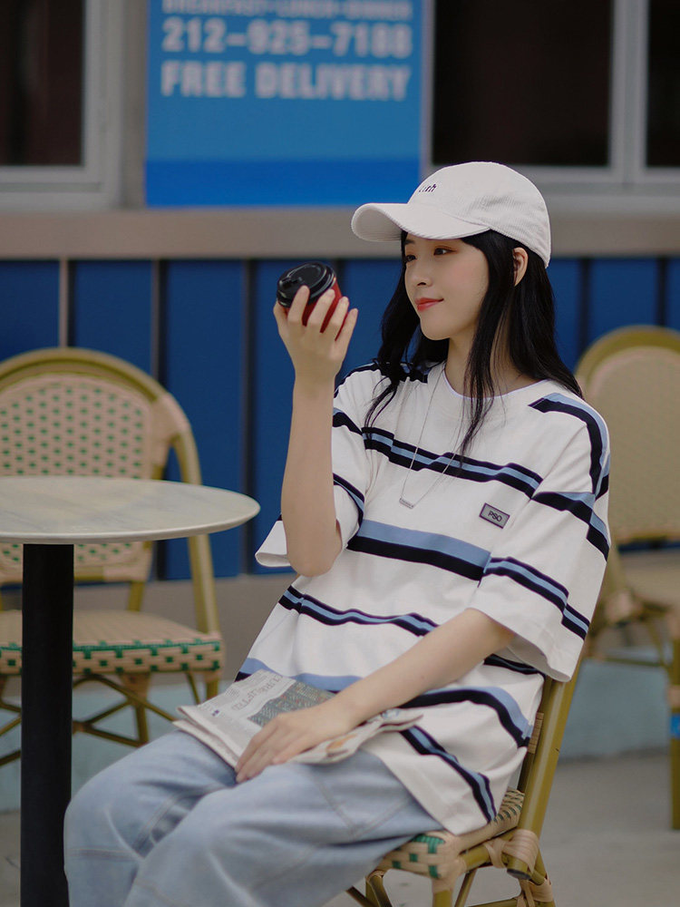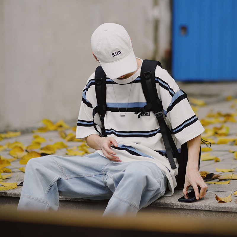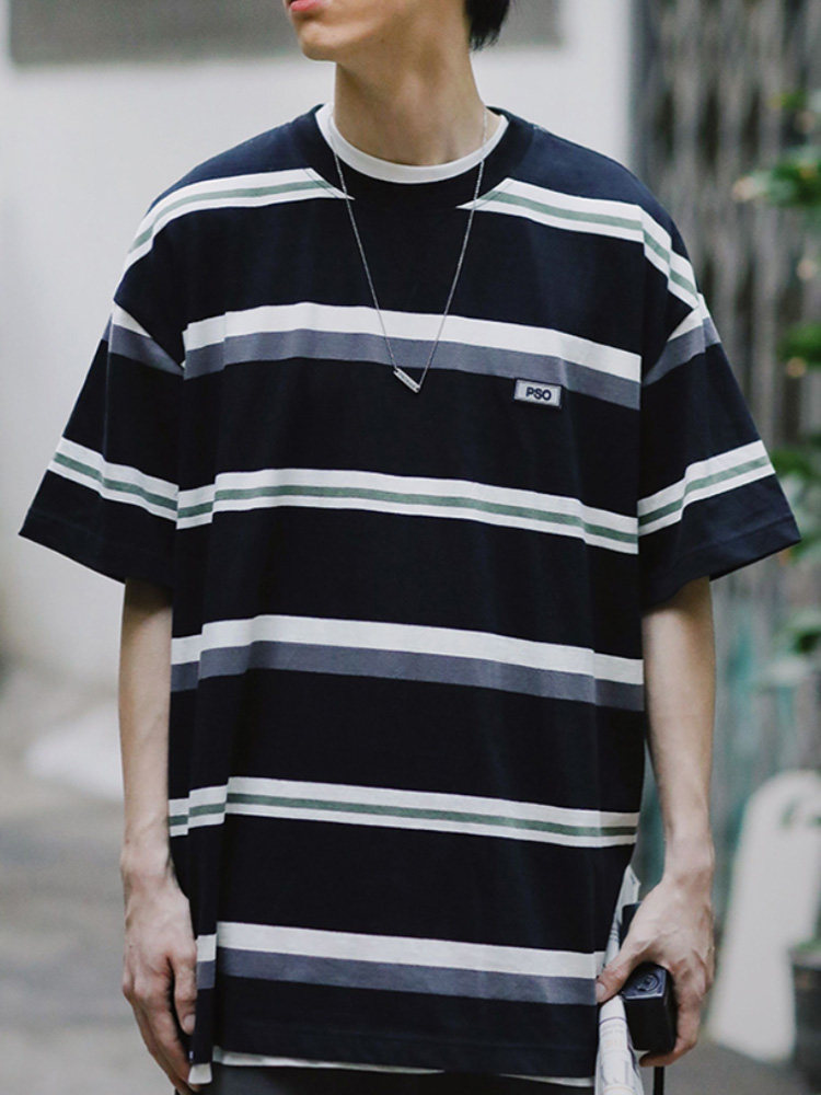 PSO Brand Japanese retro trendy brand male and female couples loose all-match casual cotton striped short-sleeved T-shirt