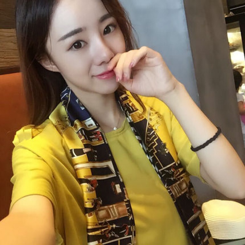 Autumn Winter Ornament Silk Scarf Necklace Colorful Flowers Long Version Individuality Lady Neck Hanging Accessories Sweater Necklace shirt with accessories