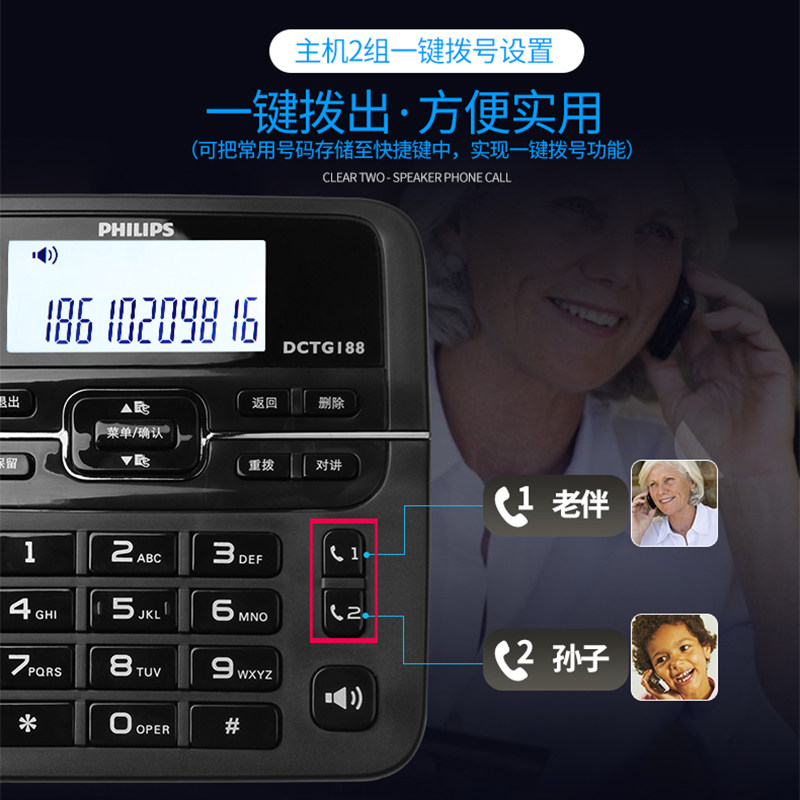 Philips DCTG188 Digital wireless phone submachine seat machine home wireless office Chinese hands-free