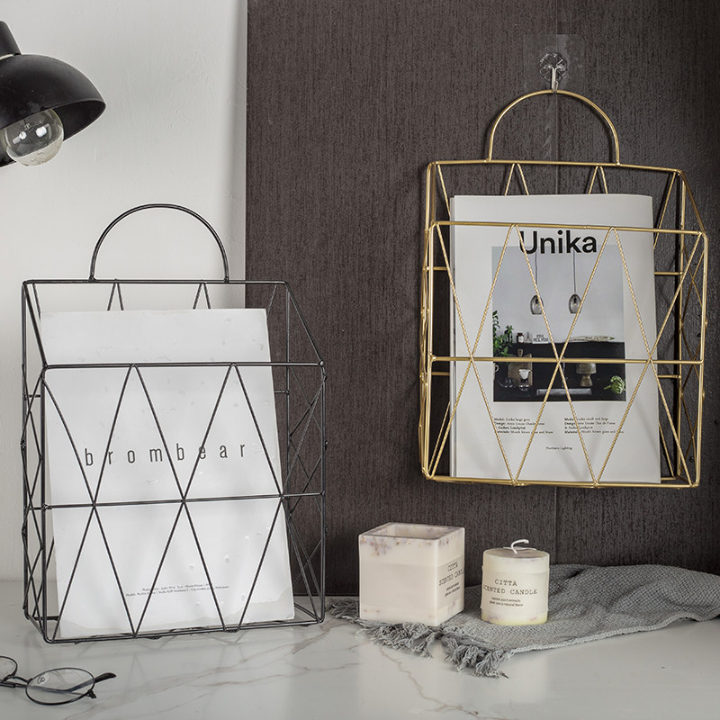 ins Nordic wall Wall Decoration Shelve Wall Hanging Book Newspaper Rack Hand Basket Creative Home Iron Art Minima Magazine Rack