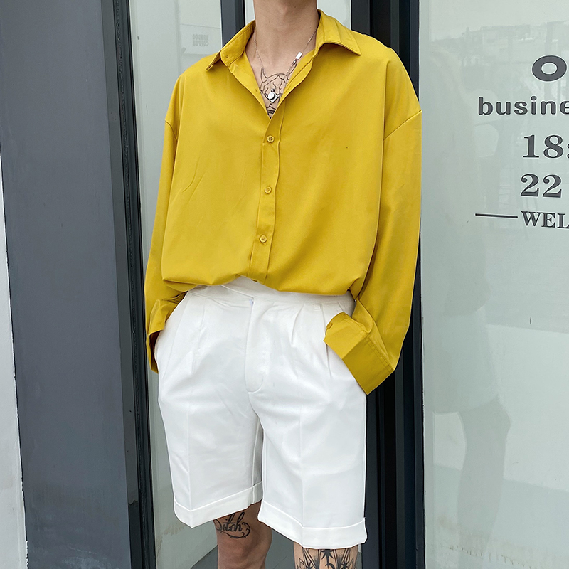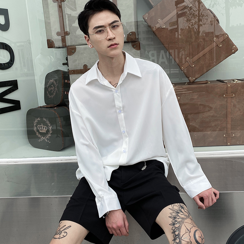 (Love to wear help) lenient South Korean shirt male pituality Forbidden Fairy's Lazy Pendant Sensant Shirt Ruffin and Handsome Fashion