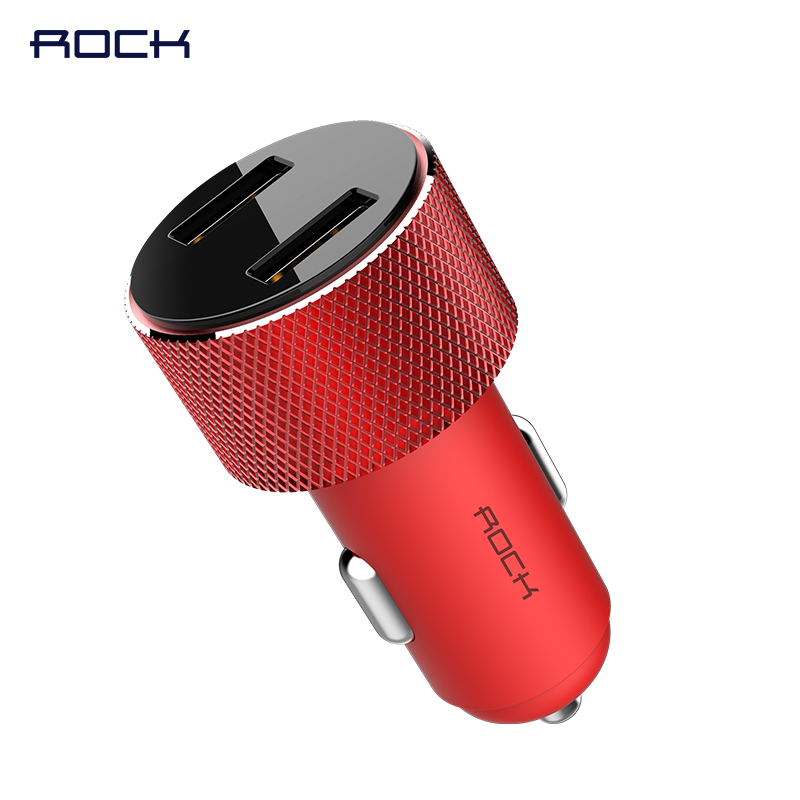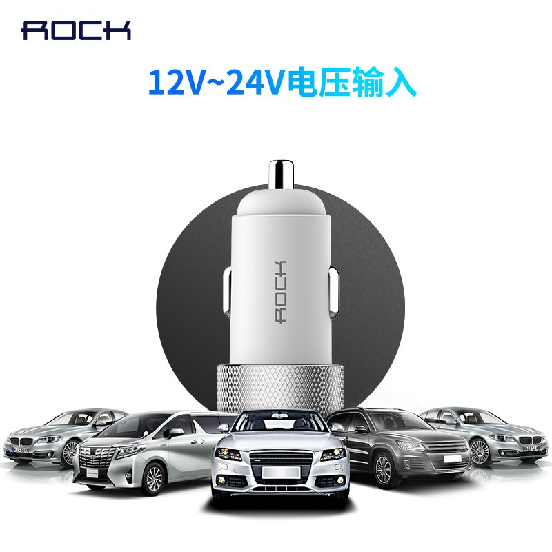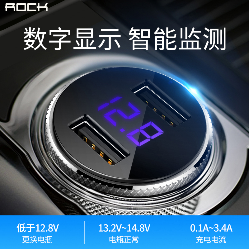 ROCK on-board charger digital display electric voltmeter 24V high-power intelligent safety fast charging 5V2 4A Applicable Huawei vivo apple OPPO mobile phone dual USB car charging cigarette lighter