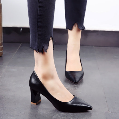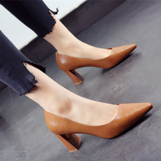 Europe station 2022 summer new pointed high heel heels Heel Coarse Heels 100 Hitch Career Genuine Leather Women Shoes All Season