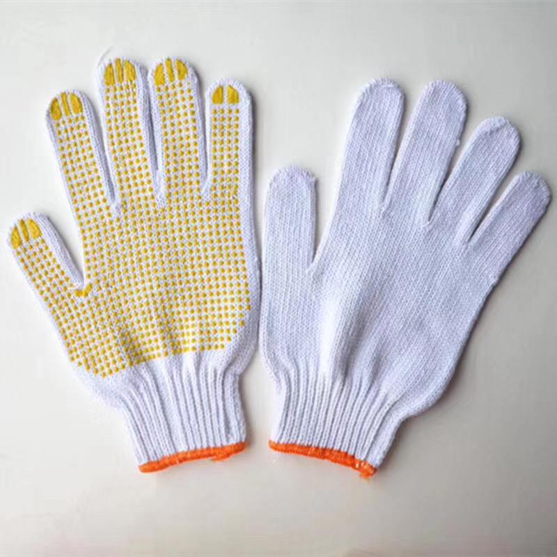 Point Gum Pure Cotton Yarn Gloves Yellow Dot Beads Dip Glue Anti Slip Spot Plastic Thickened Adult Lao Porter Removal Machine Repair Work