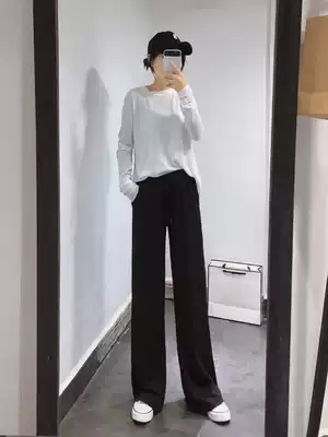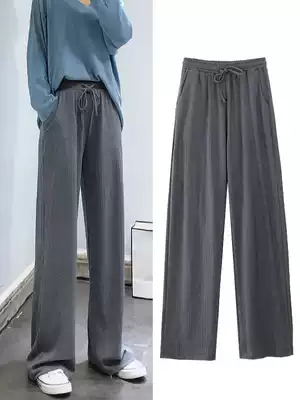 Net Red Ice Silk autumn hanging feeling mop floor loose casual pants slim Joker high waist straight wide pants women thin tide