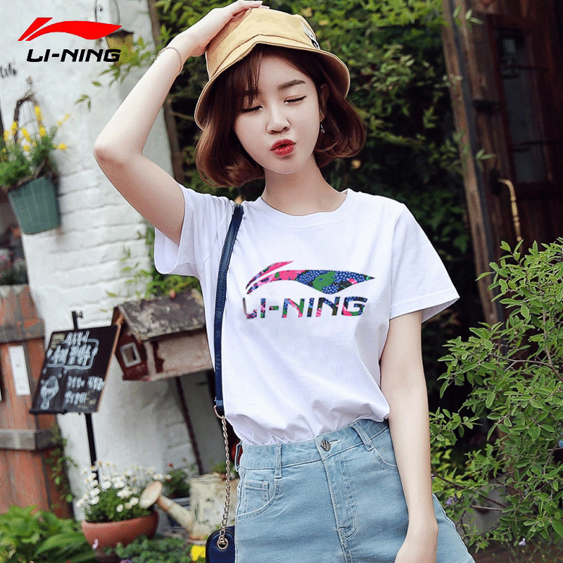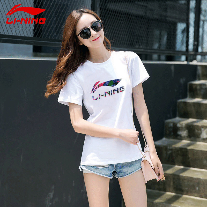 Li Ning short-sleeved T-shirt women's 2022 summer cotton breathable loose thin white sports round neck half-sleeve top women