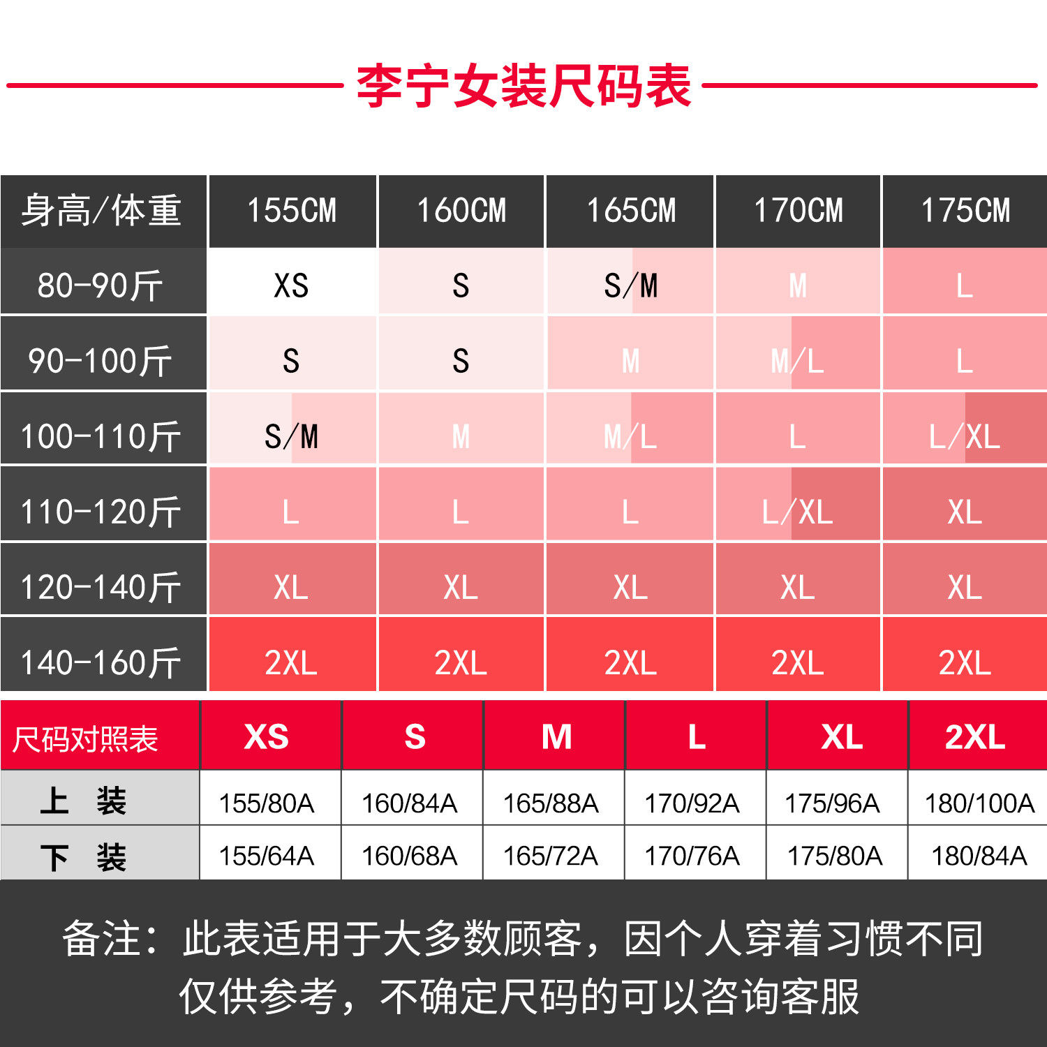 XS S M L XL 3XL 4XL XXL