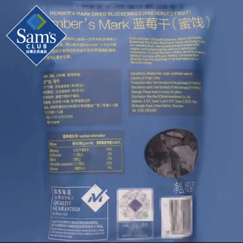Sam member Members Mark Chile imports dried blueberries 450g candied fruit dried fruit dried sam