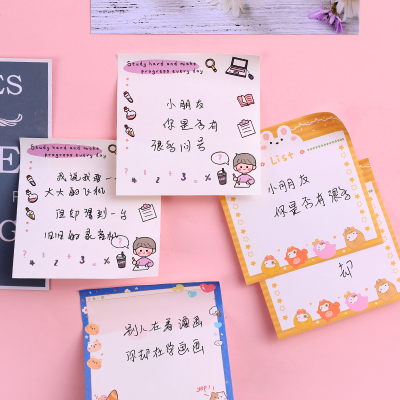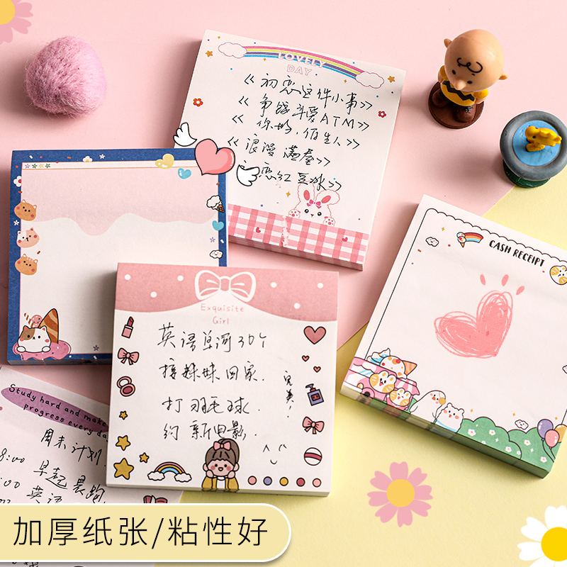 Post-it notes for students with Korean ins Cute girl heart net Red creative cartoon Sticky strong n times car label note strip Large simple tearable adhesive message notepad memo Post-it notes small book