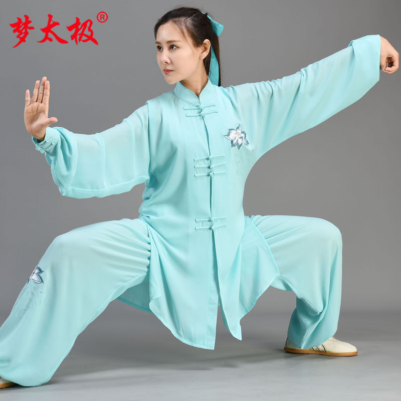 Dream Tai Chi Clear New Green Summer Thin ice silk cotton numb Tai Chi suit Performance conserved long version of male and female embroidered new flutter