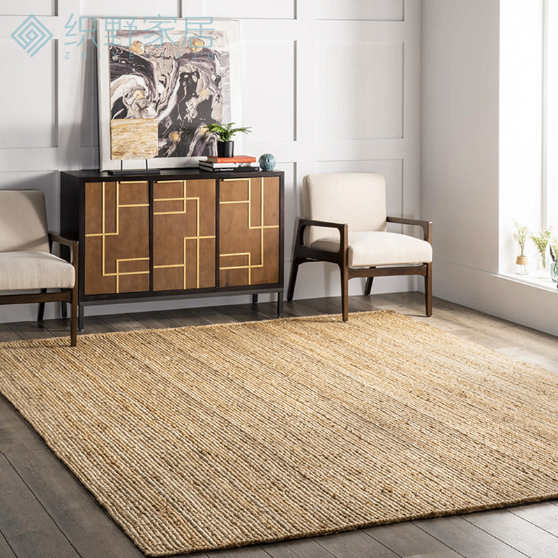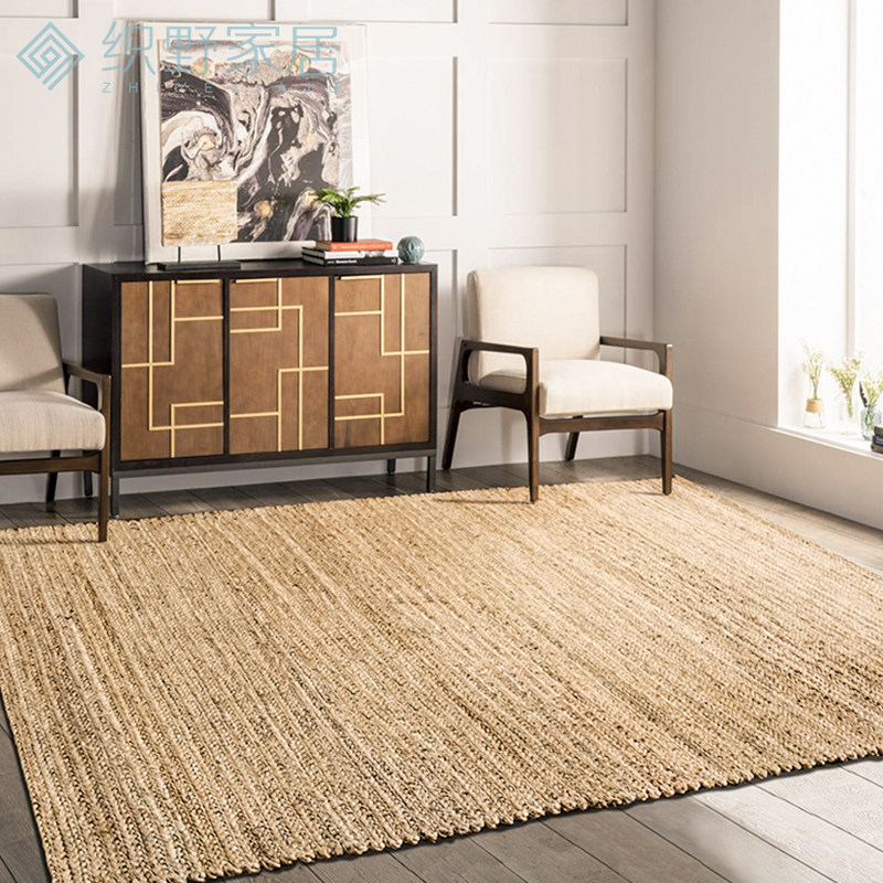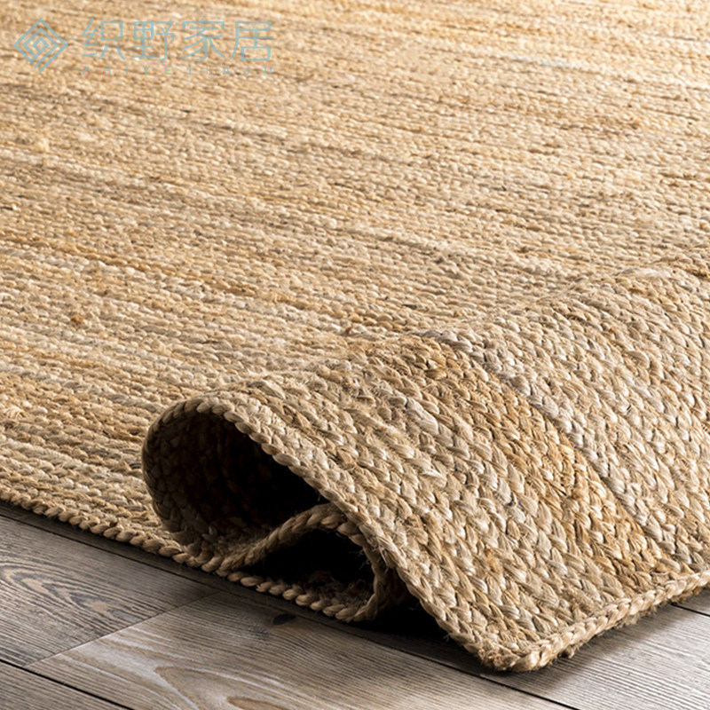 Handmade jute rug living room coffee table woven linen knotted Japanese bedroom bedside blanket Nordic style square floor mat